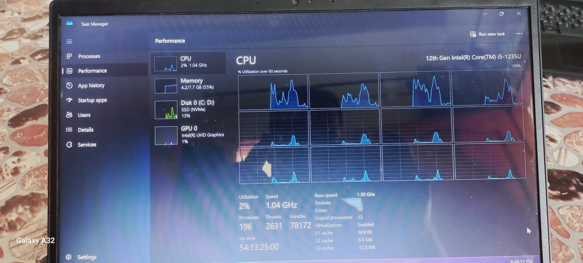 Lenovo PM youth Laptop Core i5 12th Generation, 8gb 256gb ssd